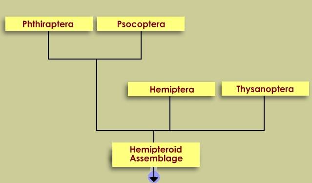 Common Names Phthiraptera: lice Psocoptera: book lice Hemiptera: bugs, cicadas, whiteflies, blackflies, aphids, leafhoppers Thysanoptera: thrips